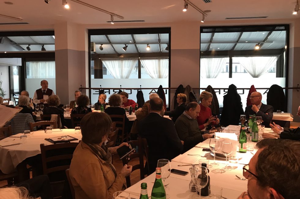 Ristorante “Palazzo Colleoni” Cortenuova Martedì 6 febbraio 2018 Parliamone tra Noi Martedì 6 febbraio ci siam trovati per la nostra consueta conviviale a Palazzo Colleoni di Cortenuova e è stata l’occasione di un “parliamone tra noi” molto vivace. Il Presidente Pier Giorgio Finazzi ha proposto alcuni spunti di riflessione su come sono stati vissuti nel […]