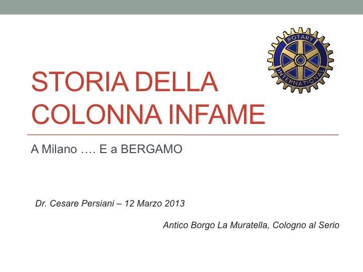 Ristorante “Antico Borgo La Muratella” Cologno al Serio Storia della Colonna Infame a Milano… e a Bergamo Relatore: dottor Cesare Persiani, scrittore Nella serata di martedì 12 marzo u.s., il Dott. Cesare Persiani* è stato nostro graditissimo ospite, deliziandoci con un sapiente quanto garbato tuffo nella storia e che storia… quella della colonna infame, con […]