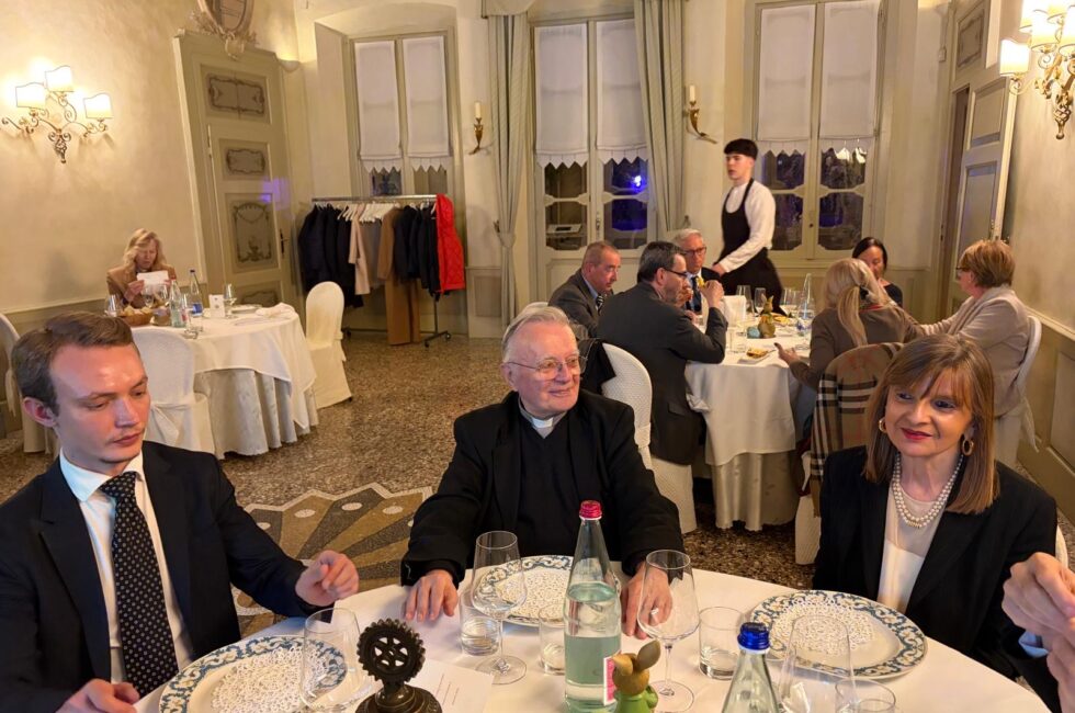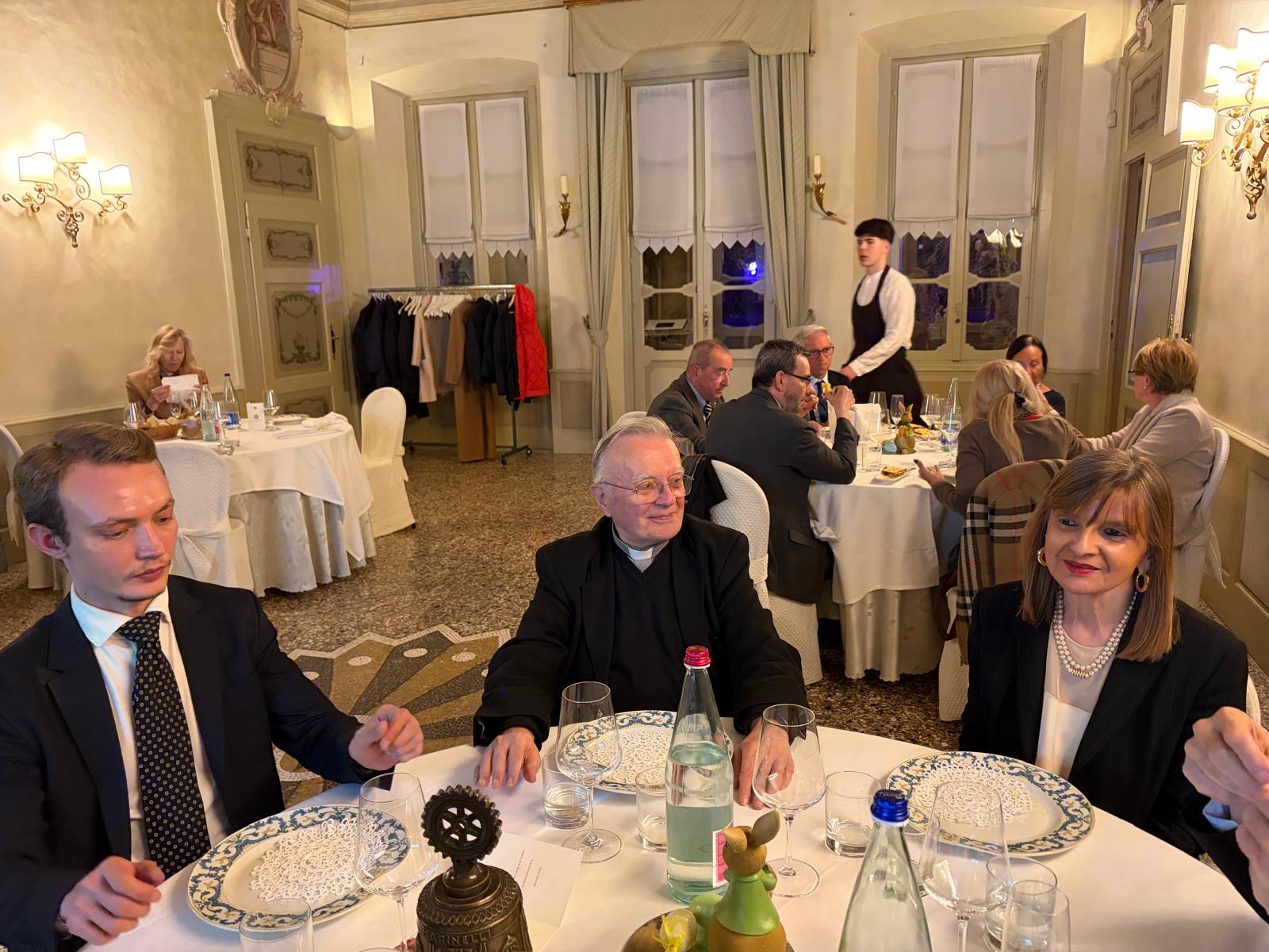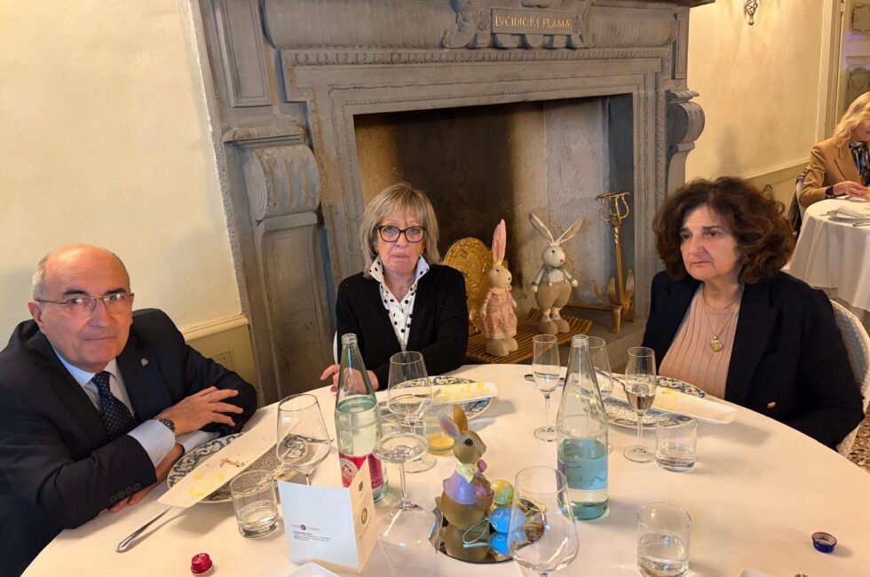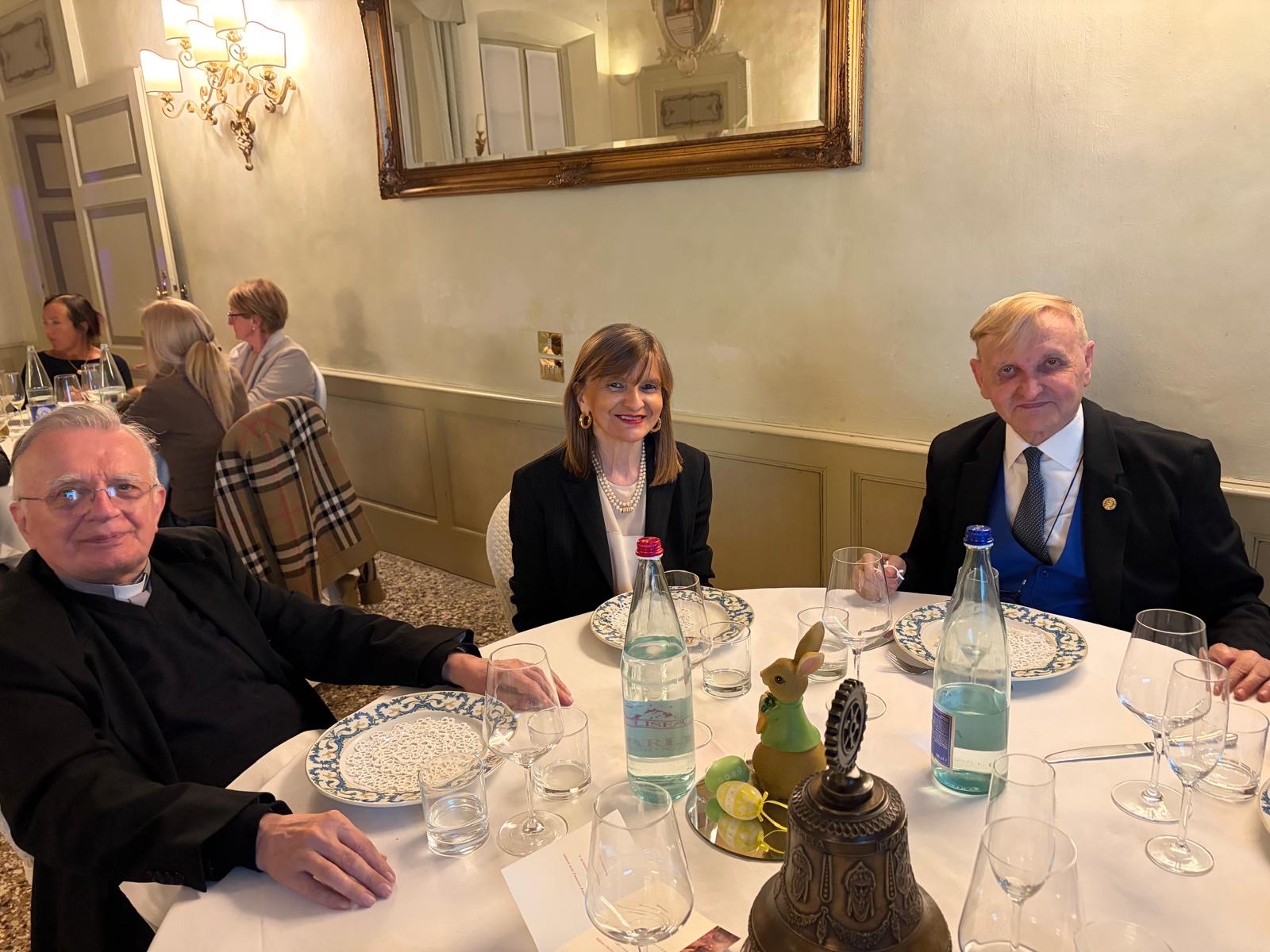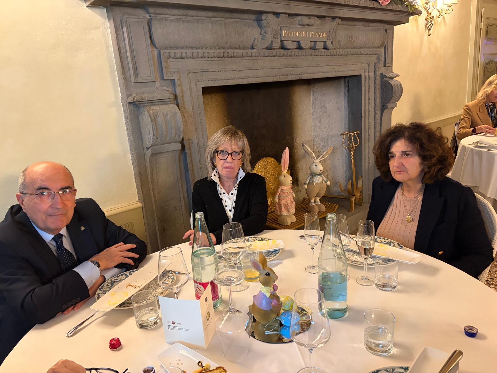 A ricordo della serata è stato lasciato a Francesco Pavoncelli il nostro guidoncino, rinnovato rispetto a quando è stato nostro socio e il calendario perpetuo, così come si sono ringraziati i gentili ospiti che hanno accompagnato il relatore, tra cui la sorella Lucia e l’arch. Andrea Pandolfi, oltre a Mons. Erminio Villa.