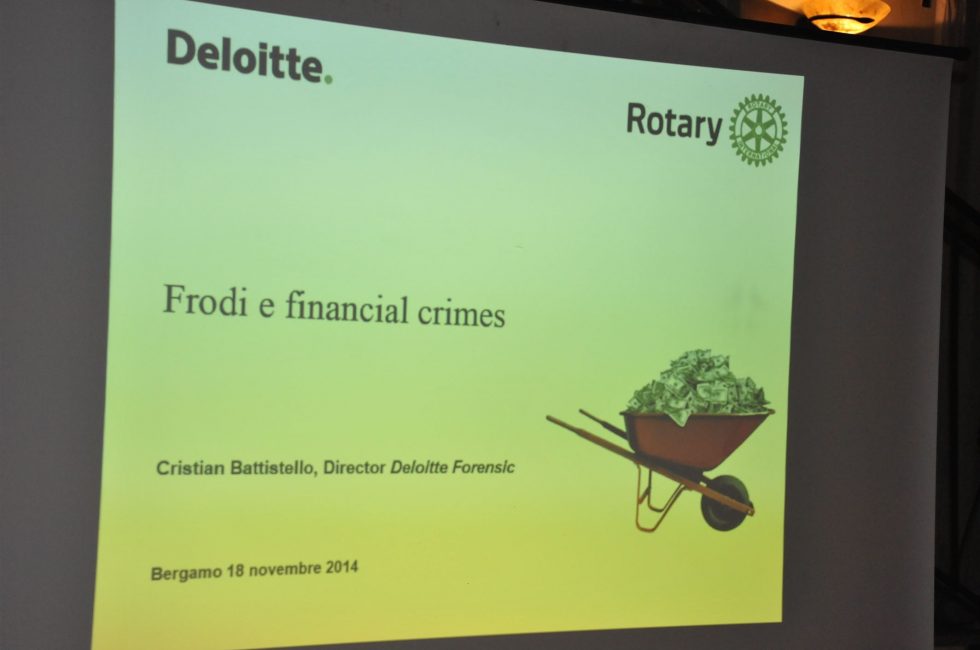 Martedì 18 novembre alla nostra conviviale ha preso parte il relatore della serata, Dr. Cristian Battistello, che ci ha intrattenuti sul tema delle frodi fiscali. 39 anni, di Romano di Lombardia, Battistello ha frequentato l’Istituto Commerciale Rubini per poi laurearsi in Economia e Legislazione per l’Impresa all’Università degli Studi di Brescia. In Deloitte dal 2001, dal 2010 è nella divisione Forensic maturando esperienze significative nell’identificazione di frodi, fatti illeciti, operazioni di distrazione di beni aziendali, nell’investigazione rispetto alle normative anticorruzione, nelle vesti di consulente tecnico e arbitratore per Aziende.